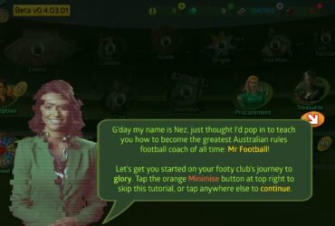 Tickle Monster is a solo game development company run by Paul Montgomery. Its debut title will be Mr Football, a hybrid of several genres: mainly sports management crossed with hero collector RPGs, with strong influence from board games. You are the coach of an Australian rules footy team but you recruit players by opening packs of cards, representing players which you can train up to gain levels.
